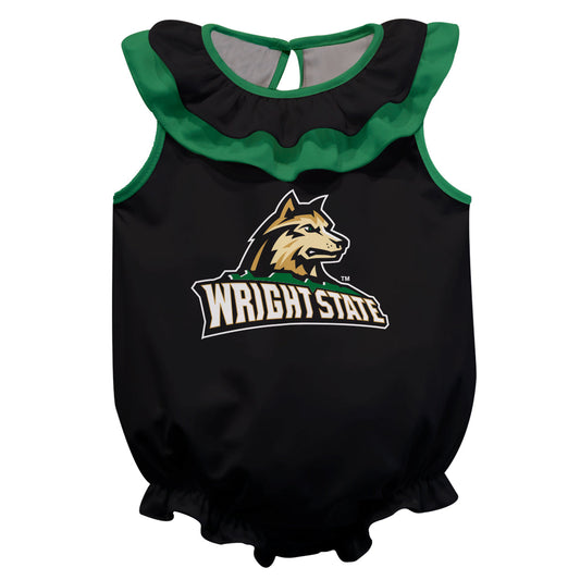 Wright State University Raiders Black Sleeveless Ruffle One Piece Jumpsuit Mascot Bodysuit by Vive La Fete