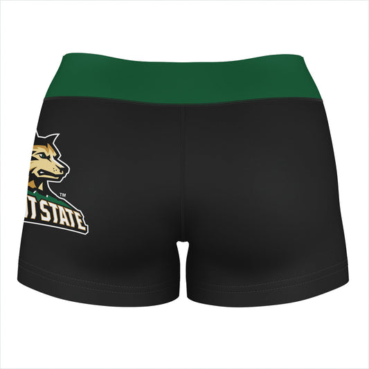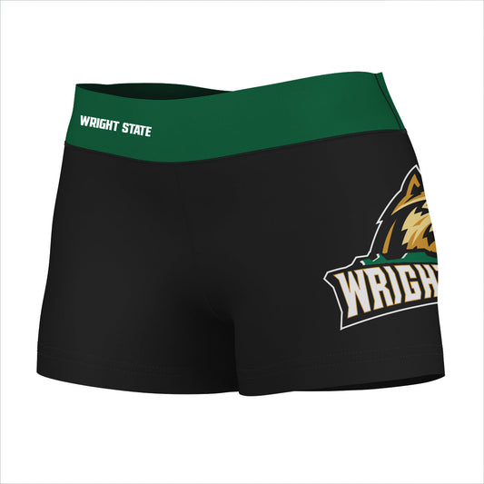 Wright State Raiders Logo on Thigh & Waistband Black & Green Womens Yoga Booty Workout Shorts by Vive La Fete