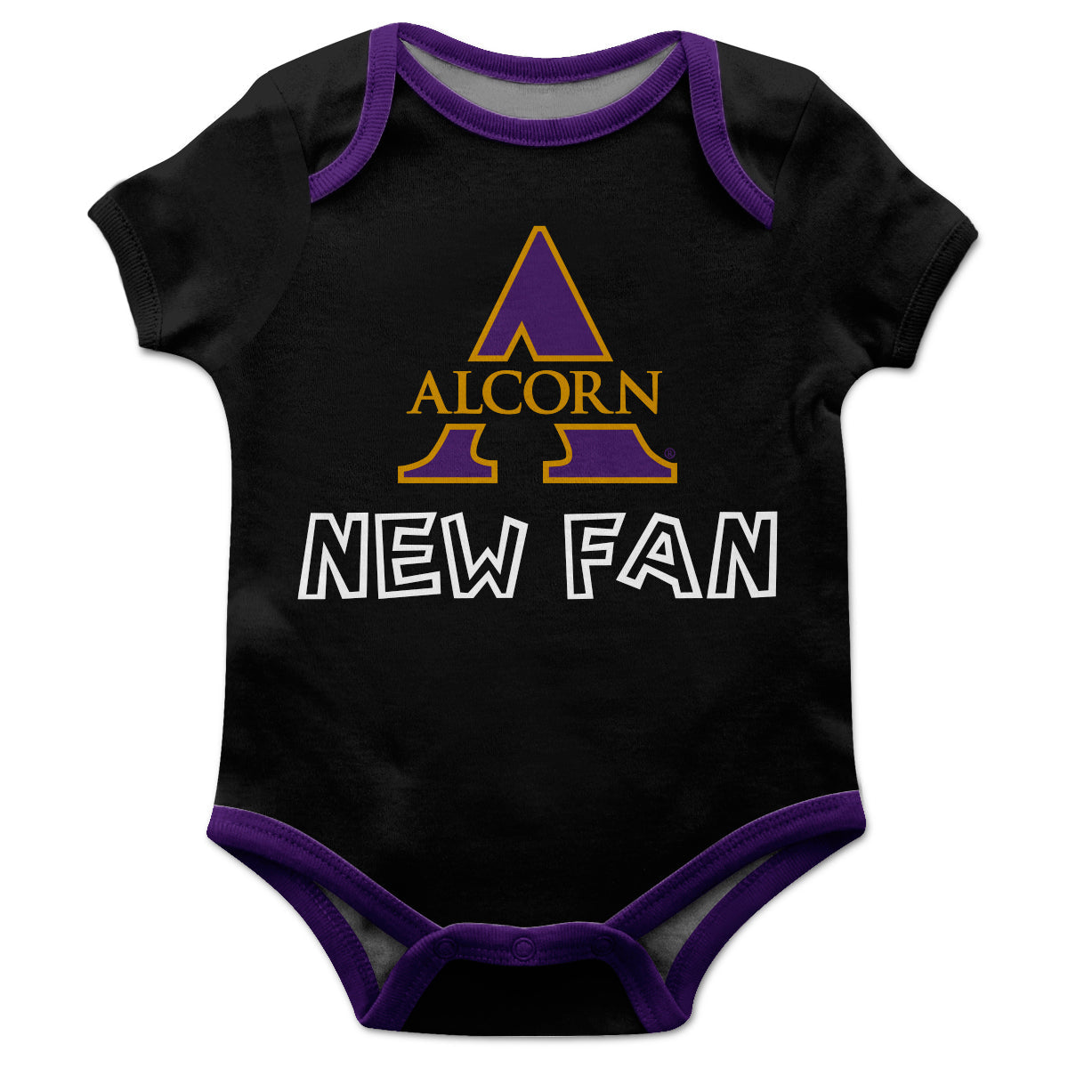 Alcorn State University Braves New Fan Black Short Sleeve One Piece Jumpsuit Romper Bodysuit by Vive La Fete