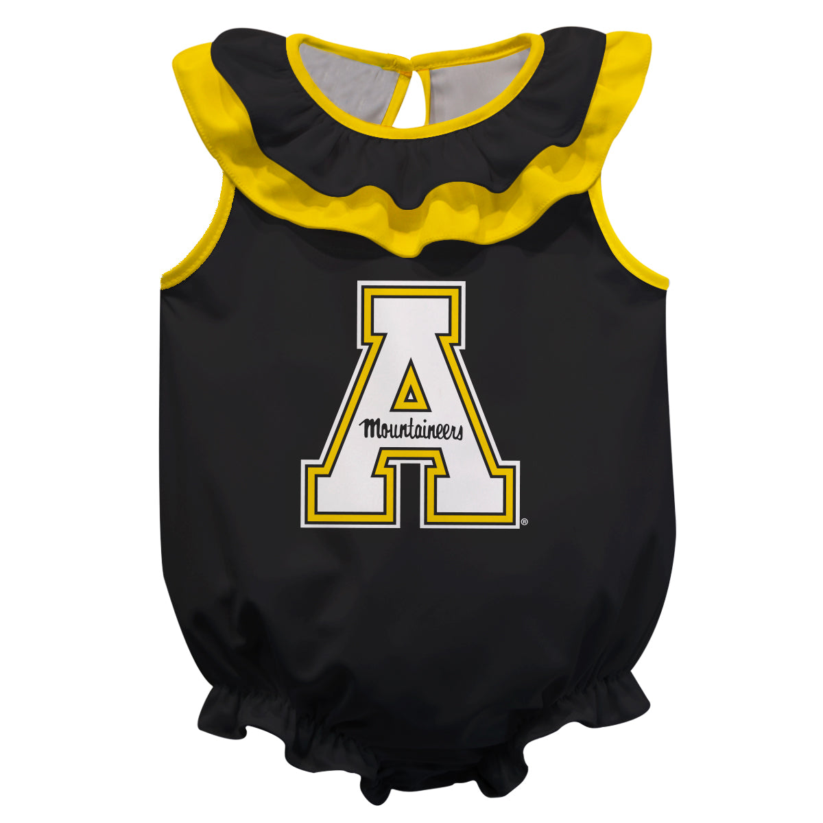 Appalachian State Mountaineers Black Sleeveless Ruffle One Piece Jumpsuit Mascot Bodysuit by Vive La Fete
