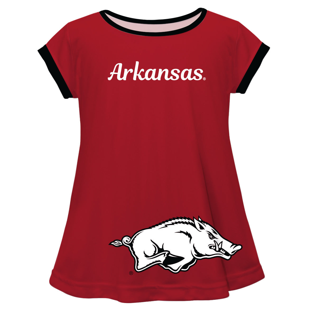 Arkansas Razorbacks Big Logo Red Short Sleeve Girls Laurie Top by Vive La Fete