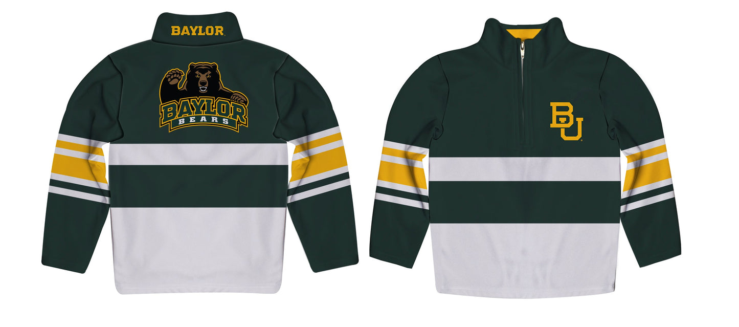 Baylor Bears Logo Stripes Green Quarter Zip Pullover Sweatshirt for Toddler and Youth
