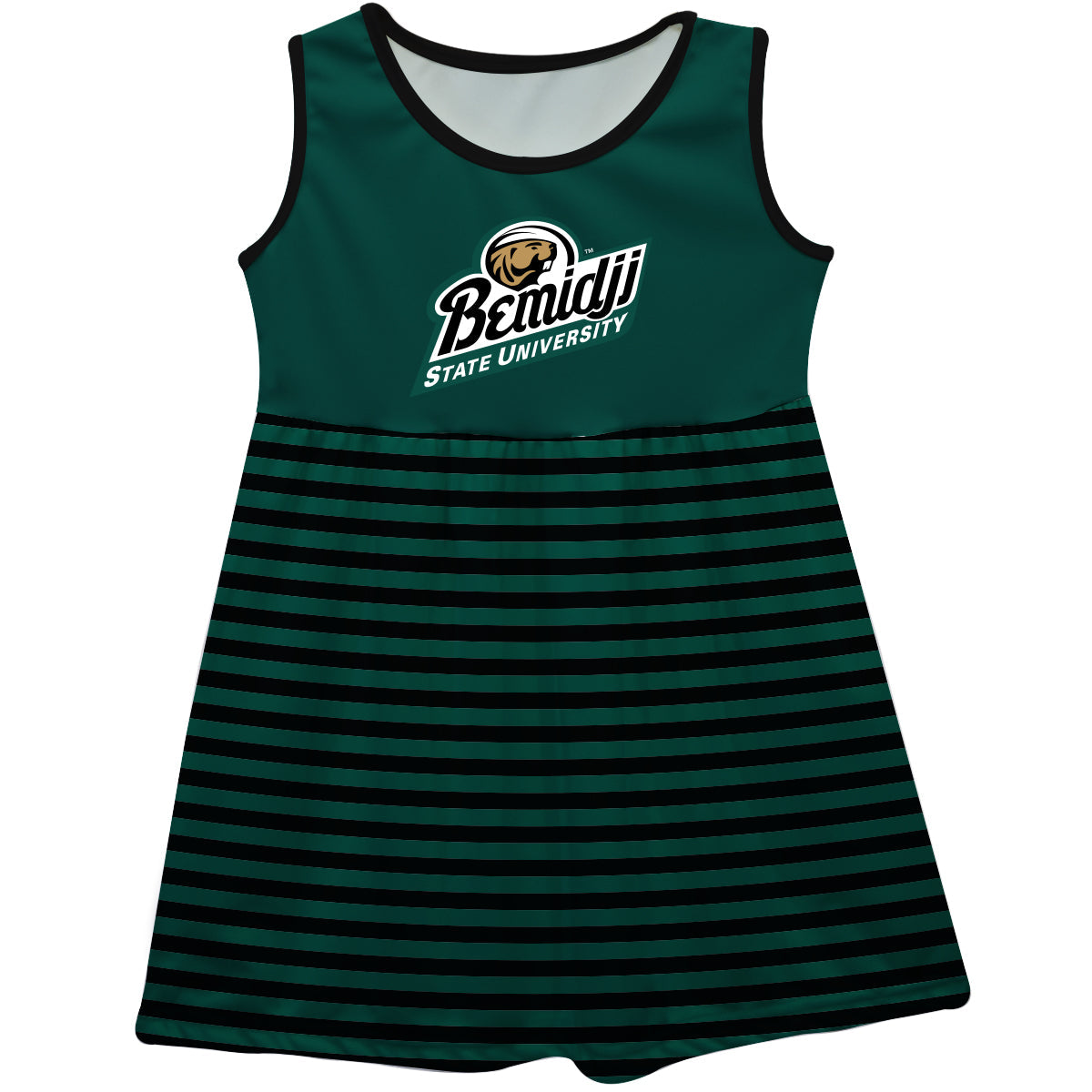 Bemidji State Beavers BSU Girls Game Day Sleeveless Tank Dress Solid Green Logo Stripes on Skirt by Vive La Fete