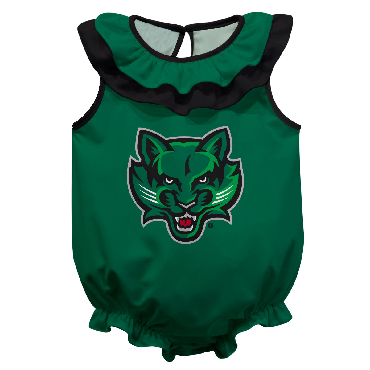 Binghamton University Bearcats Green Sleeveless Ruffle One Piece Jumpsuit Logo Bodysuit by Vive La Fete