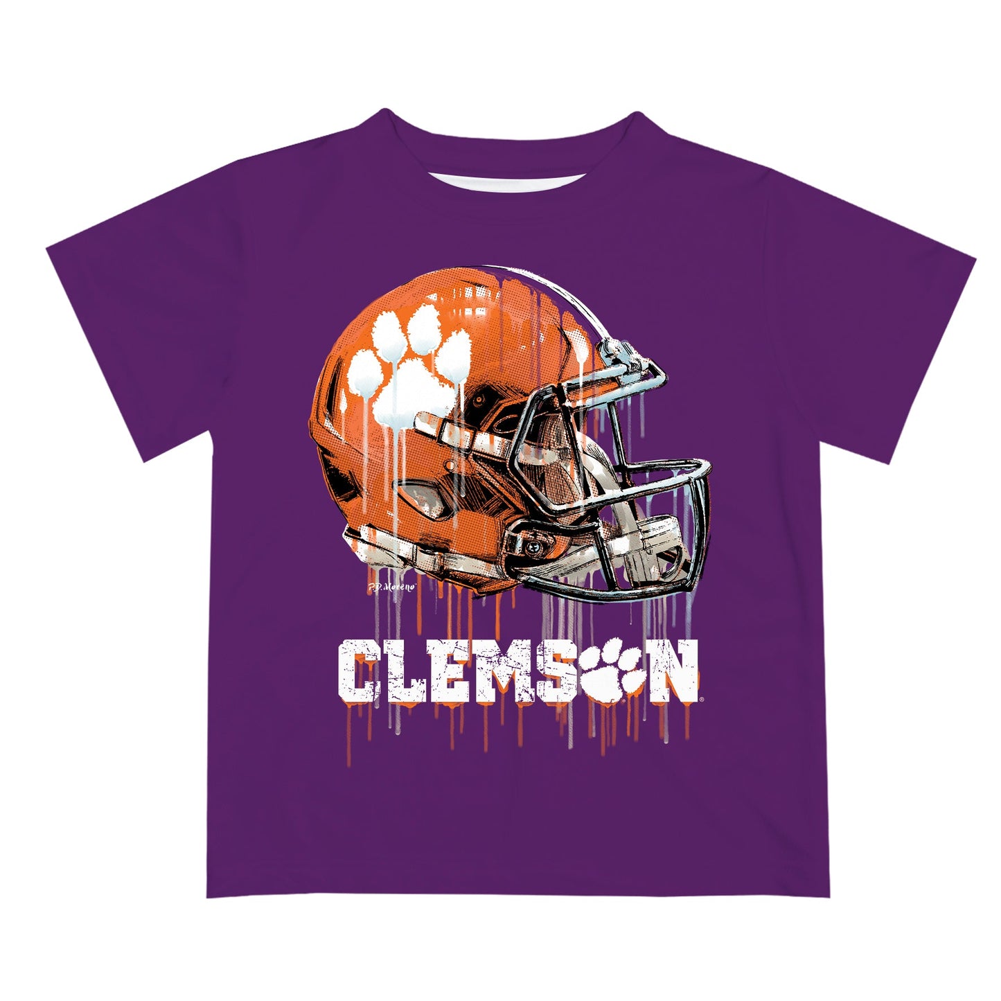 Clemson Tigers Original Dripping Football Helmet Purple T-Shirt for Boys
