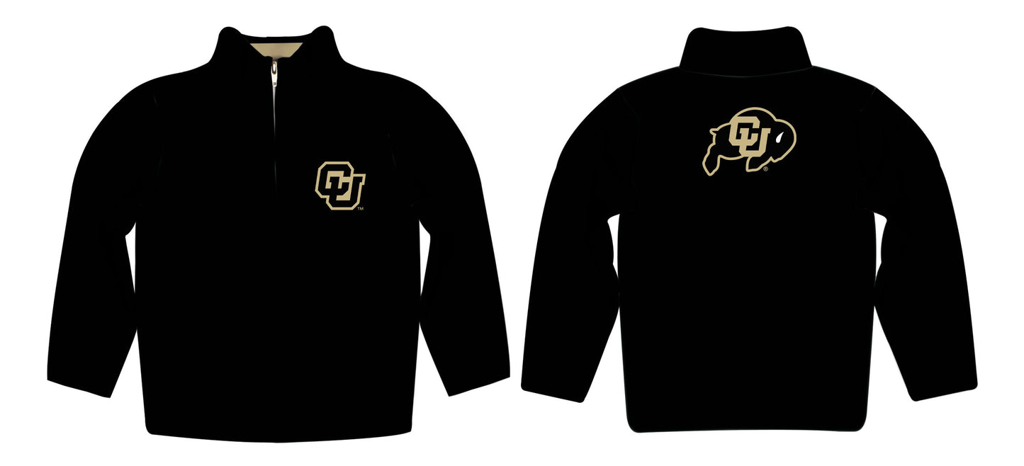 Colorado Buffaloes CU Game Day Solid Black Quarter Zip Pullover Sweatshirt for Toddlers and Youth by Vive La Fete