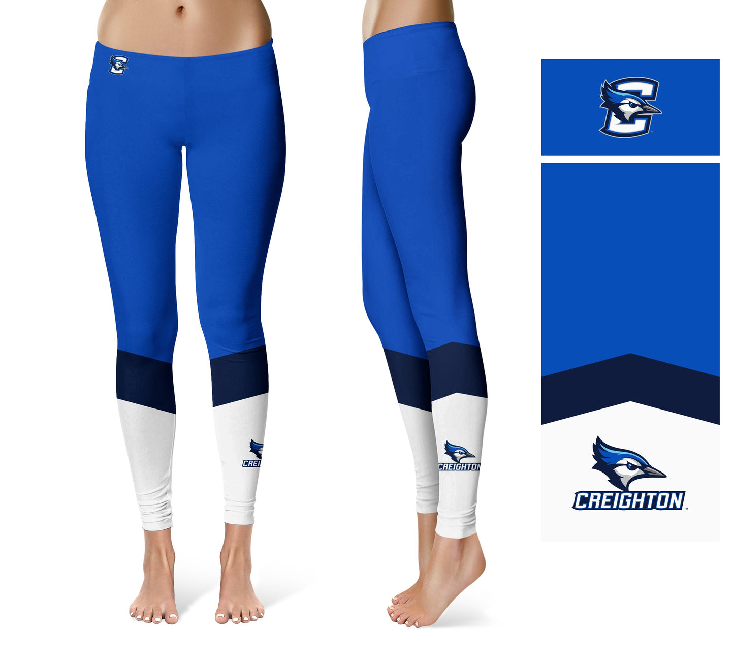 Creighton University Bluejays Game Day Ankle Color Block Blue White Yoga Leggings for Women by Vive La Fete