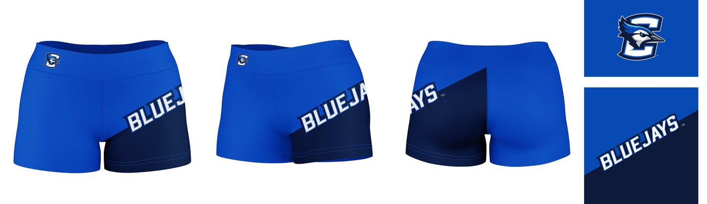Creighton University Bluejays Game Day Collegiate Leg Color Block Blue Navy Optimum Womens Yoga Shorts by Vive La Fete