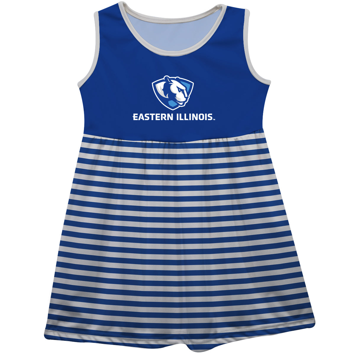 Eastern Illinois University Panthers EIU Blue and White Sleeveless Tank Dress with Stripes on Skirt by Vive La Fete