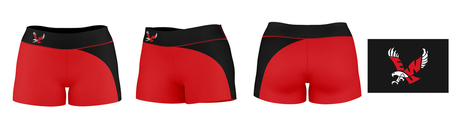 Eastern Washington Eagles EWU Collegiate Waist Color Block Red Black Optimum Womens Yoga Shorts by Vive La Fete