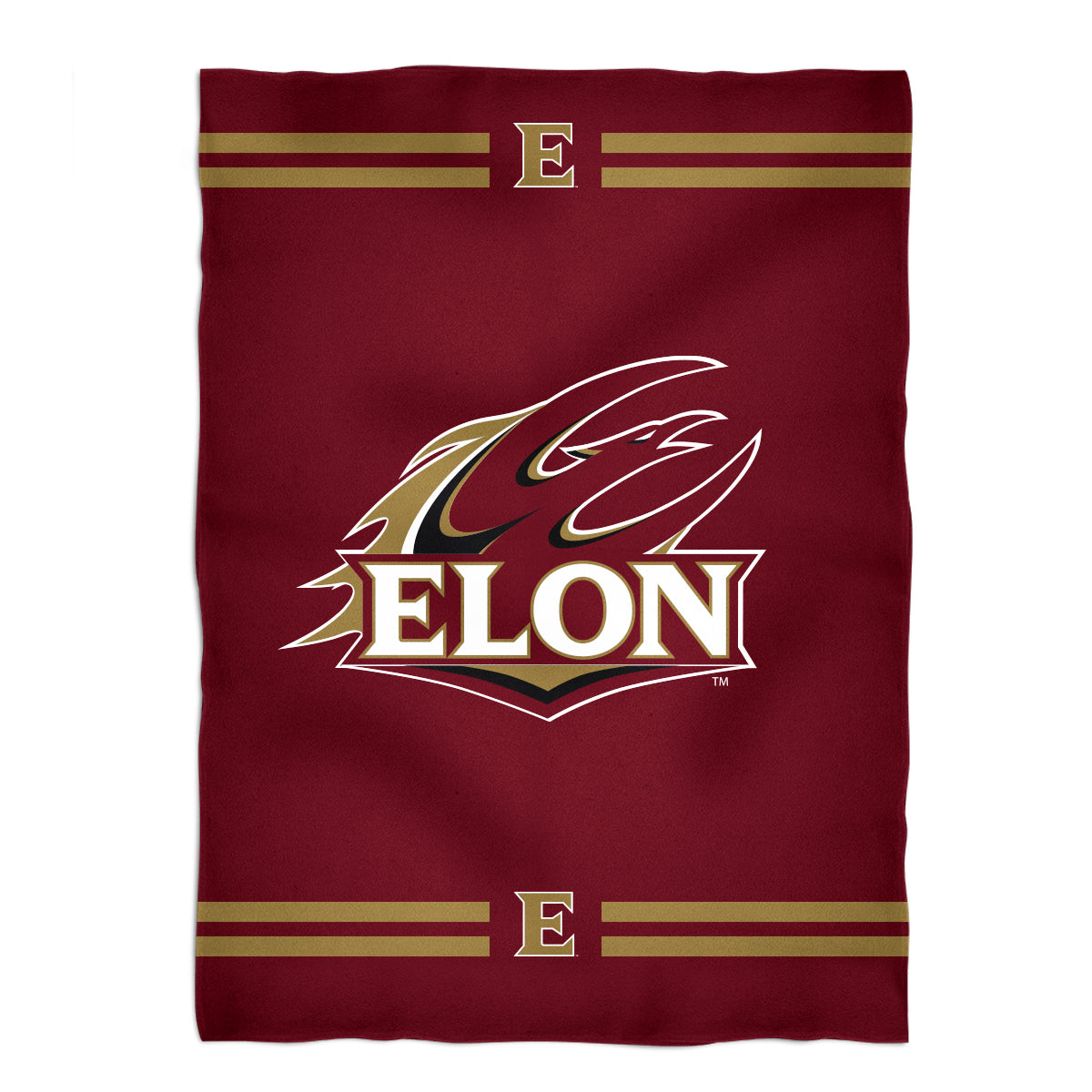 Elon University Phoenix Game Day Soft Premium Maroon Throw Blanket 40 x 58 Logo and Stripes