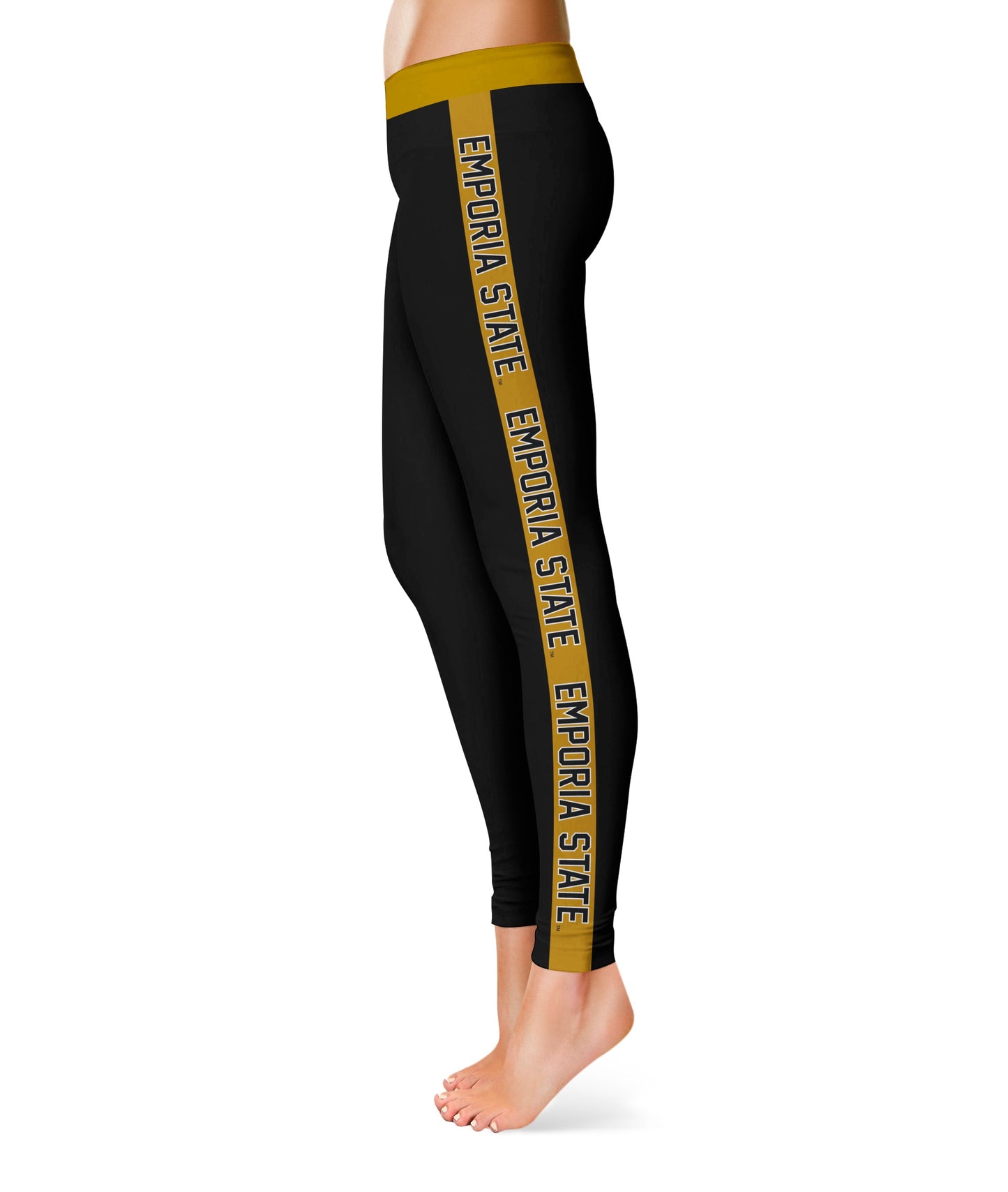 Emporia State University Hornets Game Day Gold Stripes Black Yoga Leggings for Women by Vive La Fete