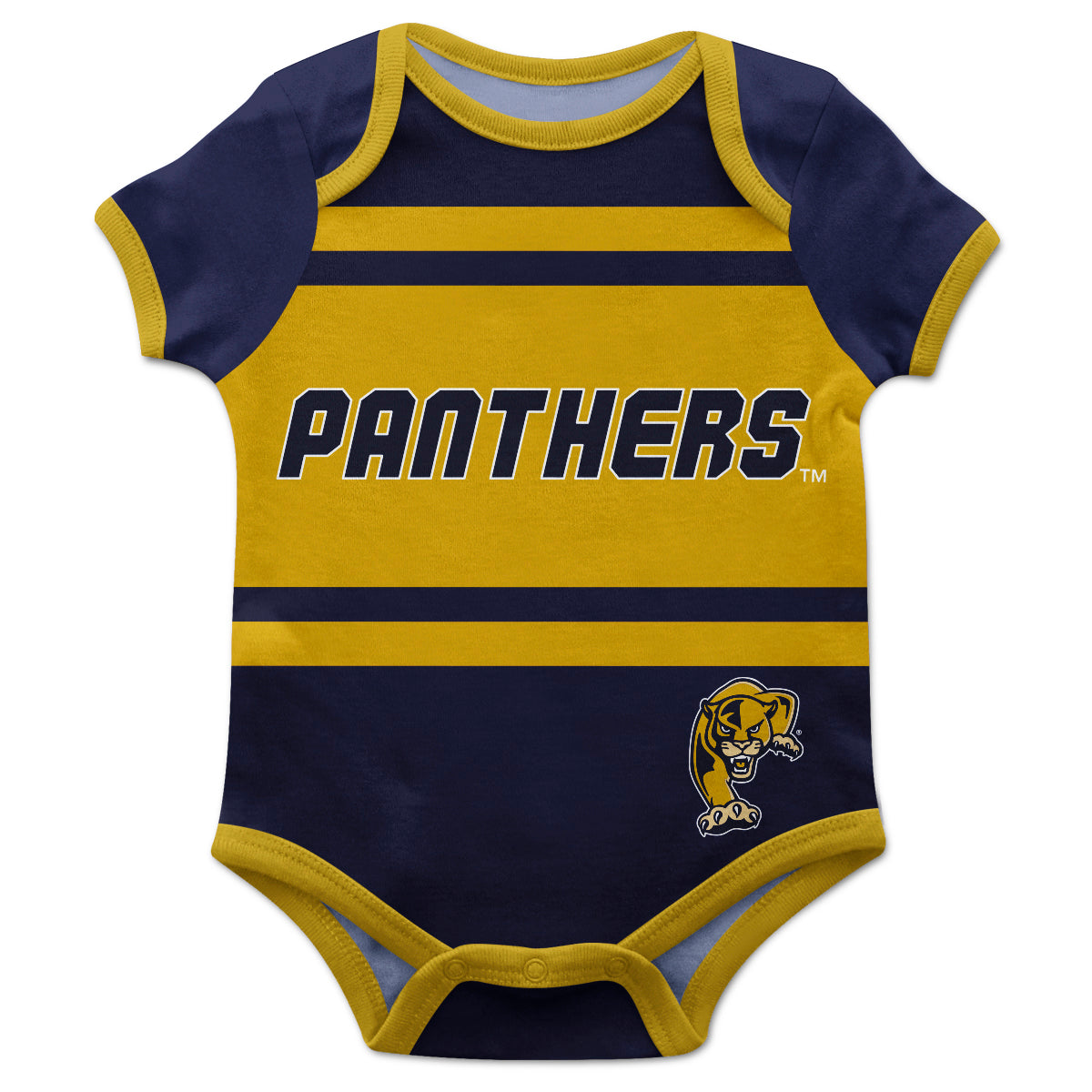 FIU Panthers Panthers Block Stripe Blue Short Sleeve One Piece Jumpsuit by Vive La Fete