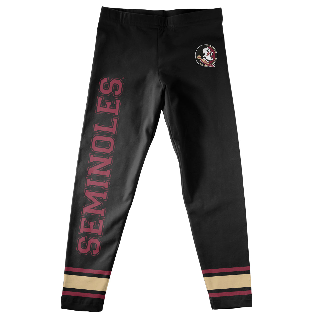 Florida State Seminoles Verbiage And Logo Black Stripes Leggings