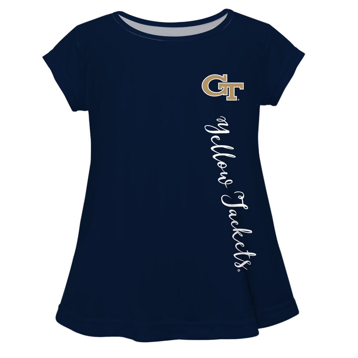 Georgia Tech Yellow Jackets Blue Solid Short Sleeve Girls Laurie Top by Vive La Fete