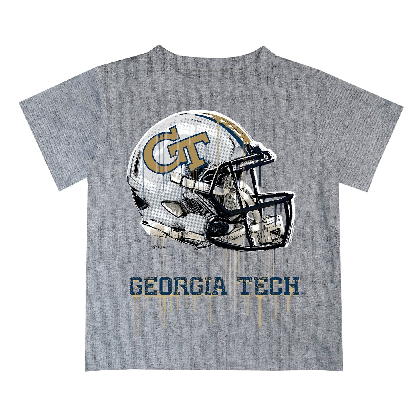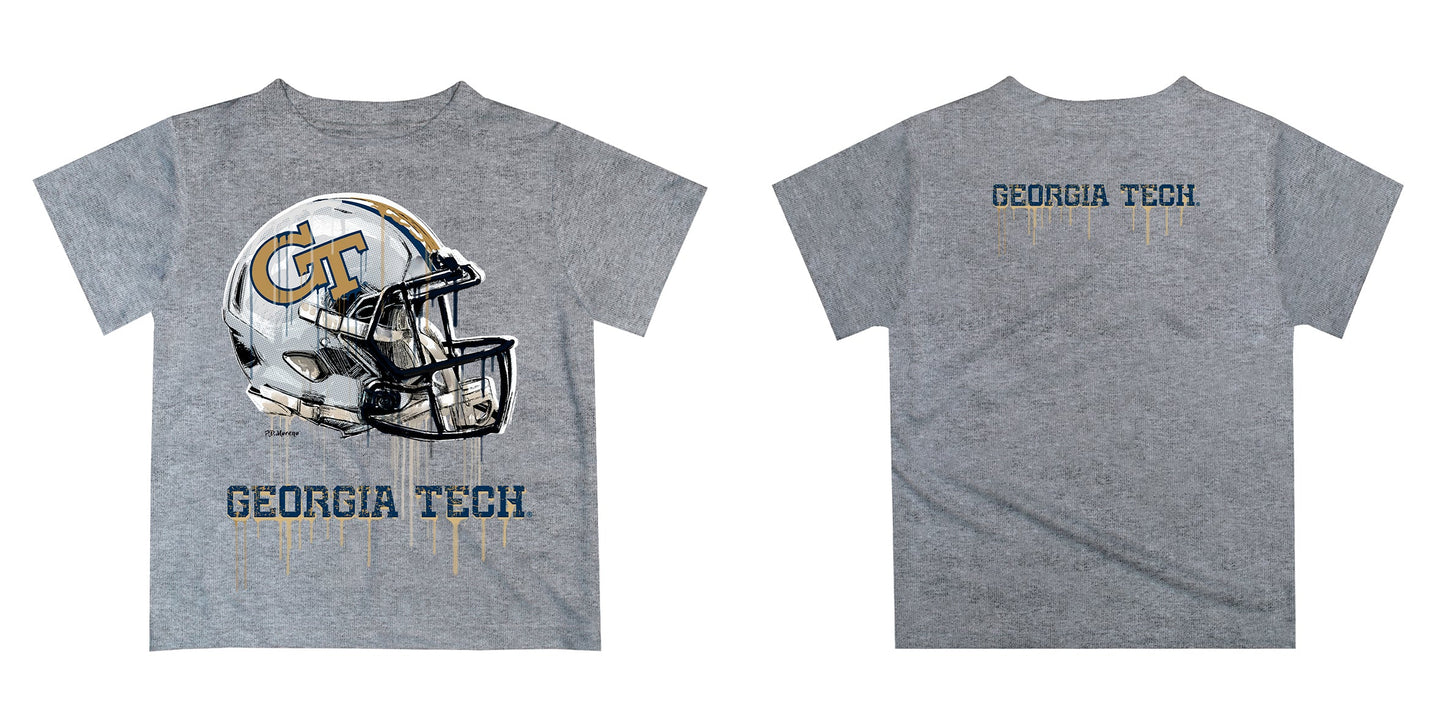 Georgia Tech Yellow Jackets Original Dripping Football Helmet Heather Gray T-Shirt for Boys