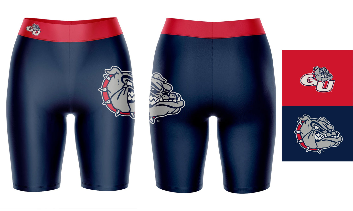 Gonzaga Bulldogs Zags GU Game Day Logo on Thigh and Waistband Blue and Red Womens Bike Shorts by Vive La Fete
