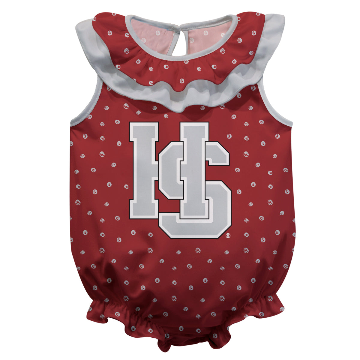 Hampden Sydney Tigers Swirls Maroon Sleeveless Ruffle One Piece Jumpsuit Logo Bodysuit by Vive La Fete