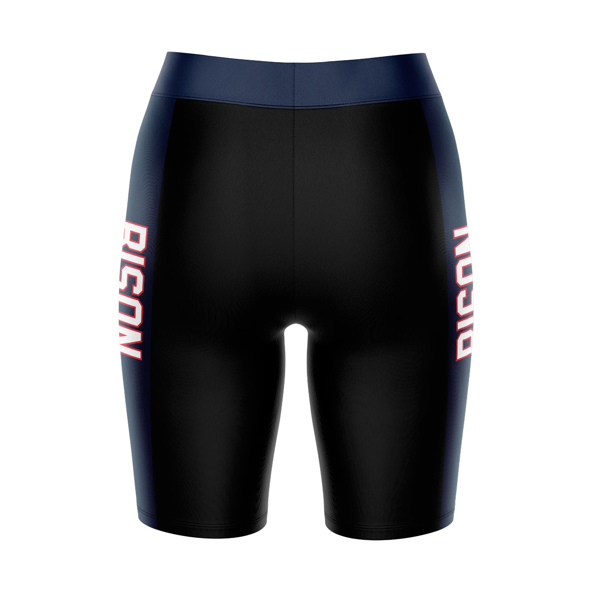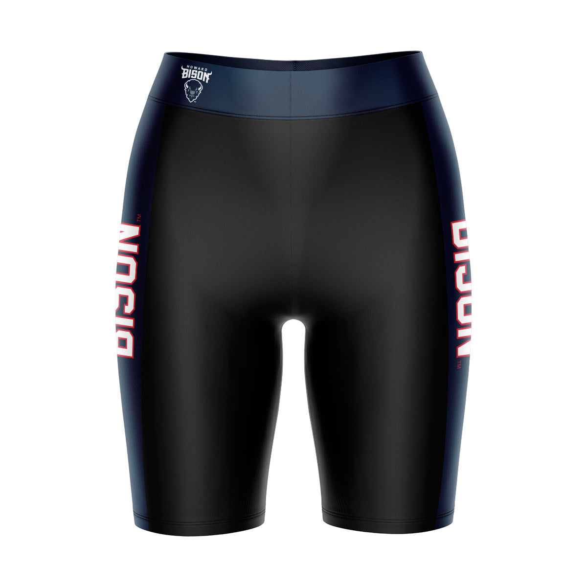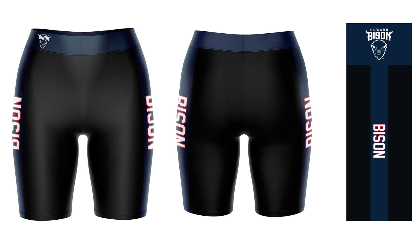 Howard University Bison Game Day Logo on Waistband and Blue Stripes Black Womens Bike Shorts by Vive La Fete