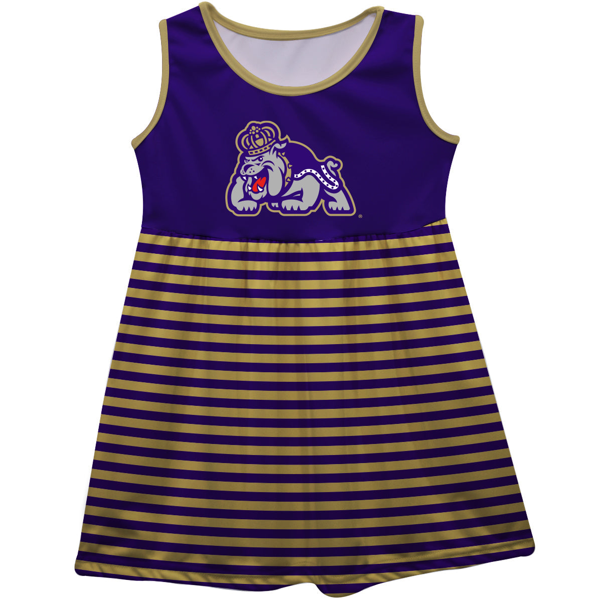 JMU Dukes Girls Game Day Sleeveless Tank Dress Solid Purple Mascot Stripes on Skirt by Vive La Fete