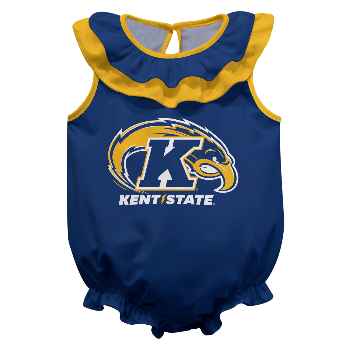 Kent State Golden Flashes Blue Sleeveless Ruffle One Piece Jumpsuit Logo Bodysuit by Vive La Fete