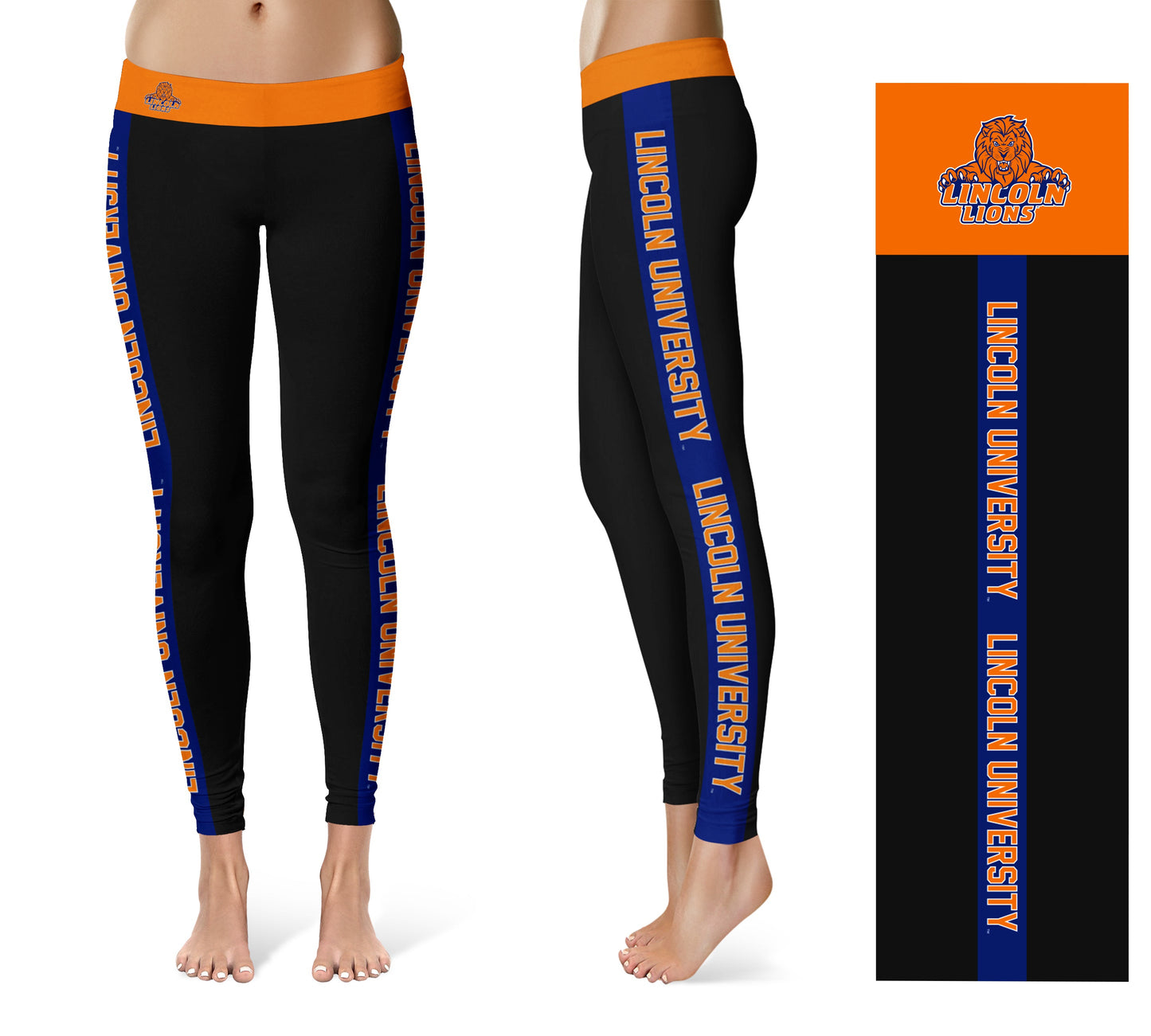 Lincoln University Lions LU Game Day Blue Stripes Black Yoga Leggings for Women by Vive La Fete
