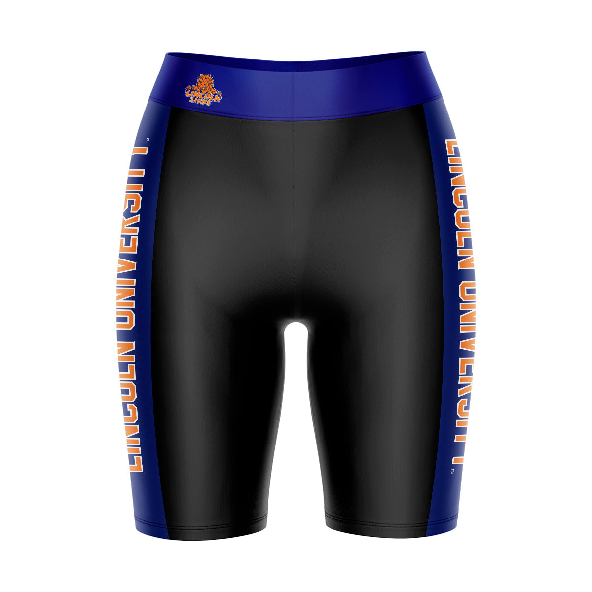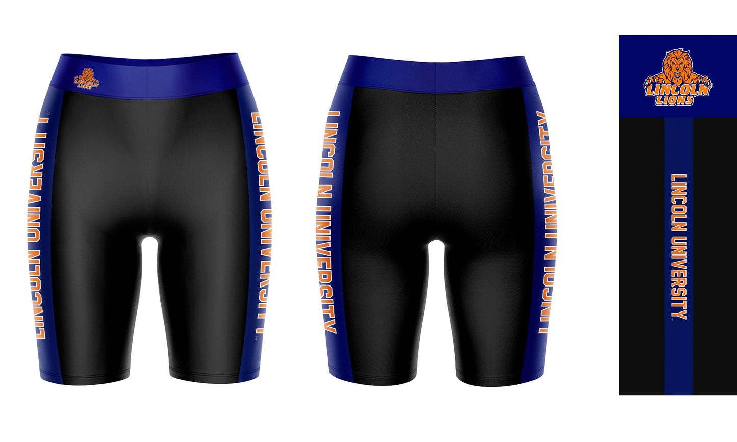 Lincoln University Lions LU Game Day Logo on Waistband and Blue Stripes Black Womens Bike Shorts by Vive La Fete