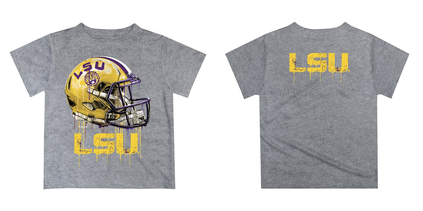 Louisiana State Tigers Original Dripping Football Helmet Heather Gray T-Shirt for Boys