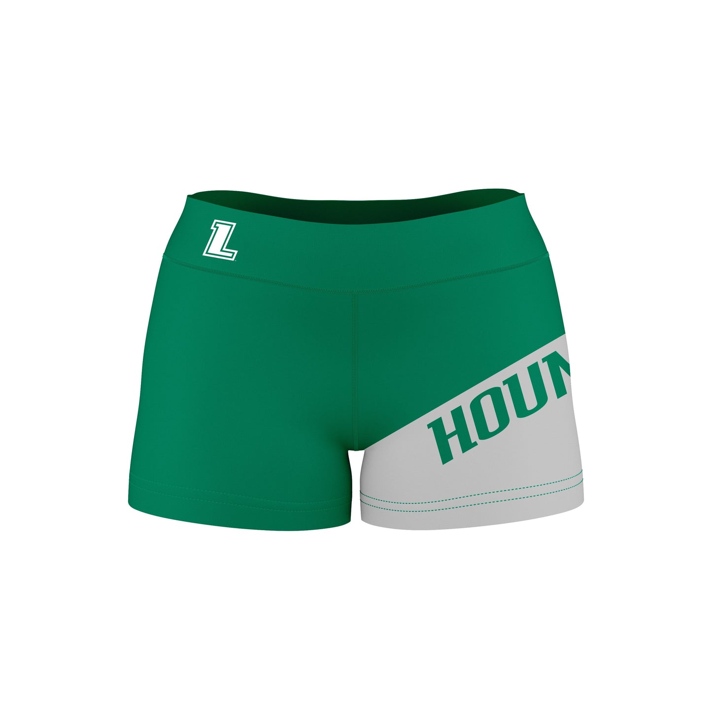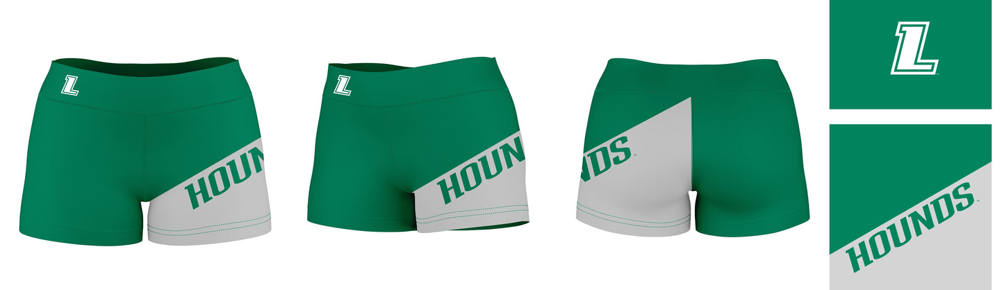 Loyola Maryland Greyhounds Game Day Collegiate Leg Color Block Green Gray Optimum Womens Yoga Shorts by Vive La Fete