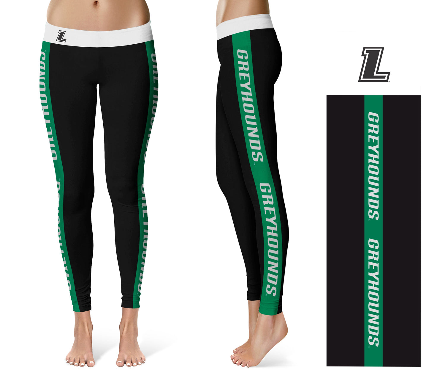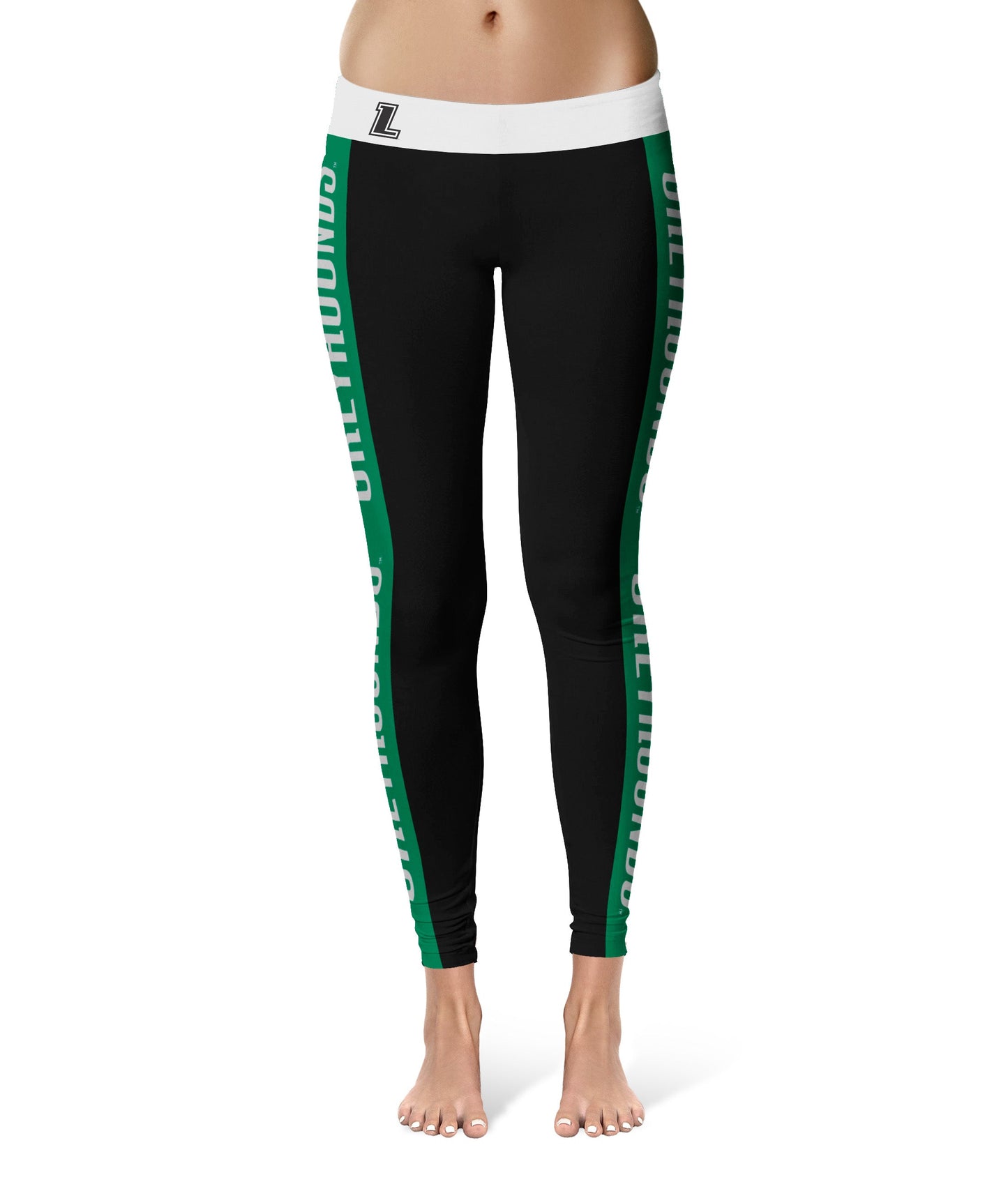 Loyola Maryland Greyhounds Game Day Green Stripes Black Yoga Leggings for Women by Vive La Fete