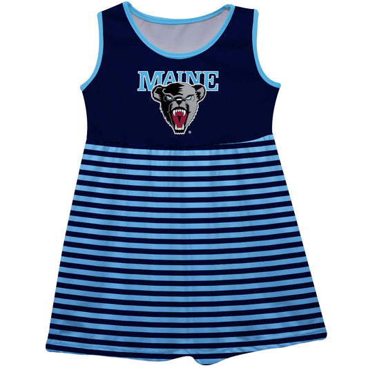 Maine Black Bears Girls Game Day Sleeveless Tank Dress Solid Navy Logo Stripes on Skirt by Vive La Fete