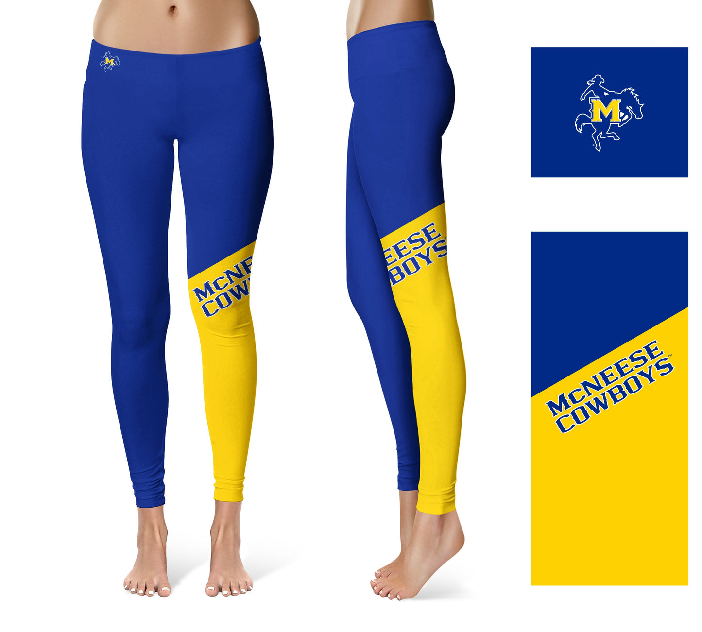 McNeese State University Cowboys Game Day Leg Color Block Blue Gold Yoga Leggings for Women by Vive La Fete