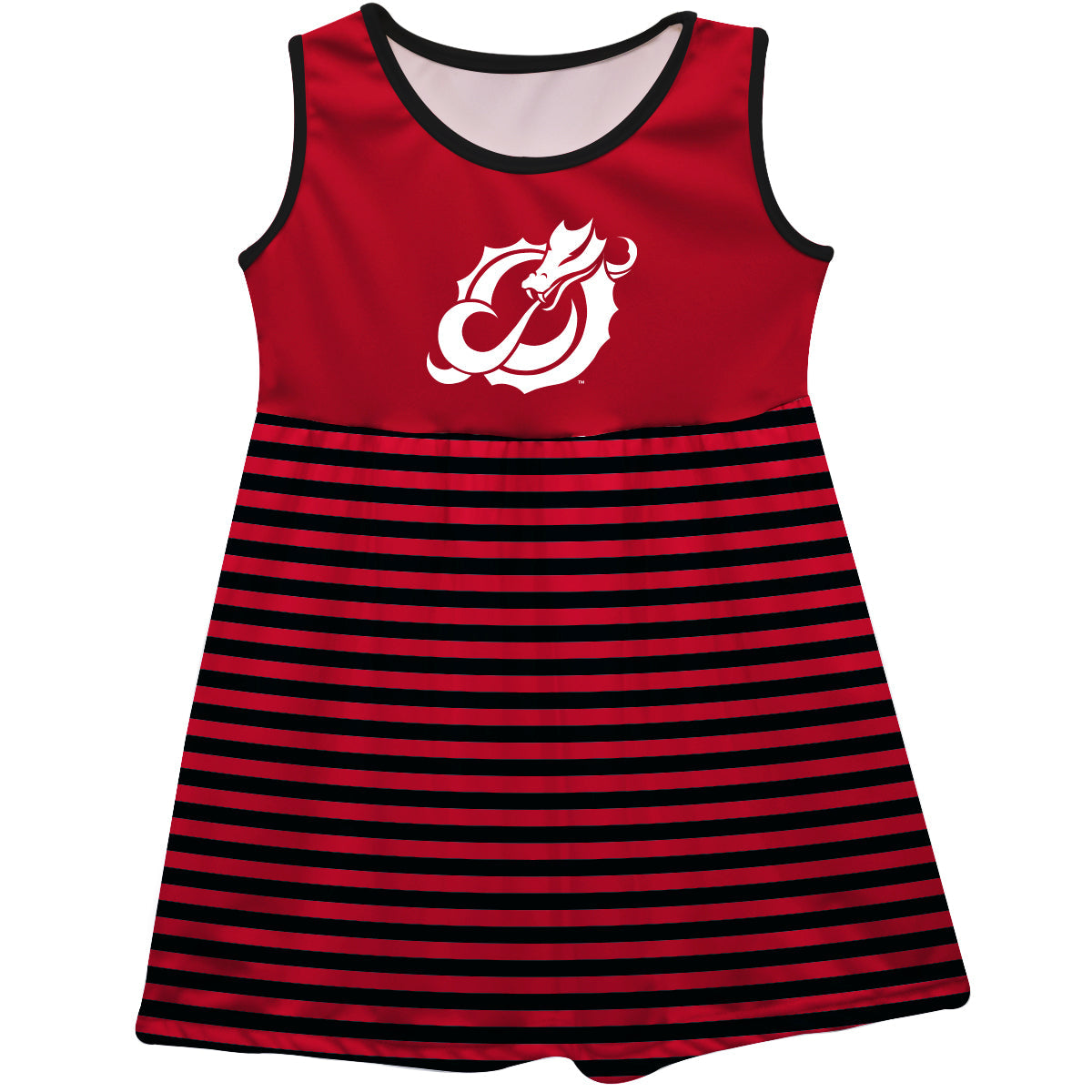 Minnesota State Dragons Girls Game Day Sleeveless Tank Dress Solid Red Logo Stripes on Skirt by Vive La Fete