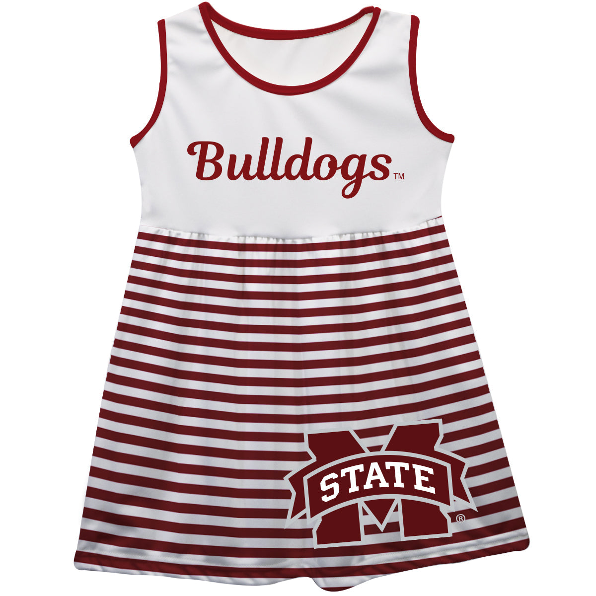 Mississippi State Big Logo Maroon And White Stripes Tank Dress by Vive La Fete