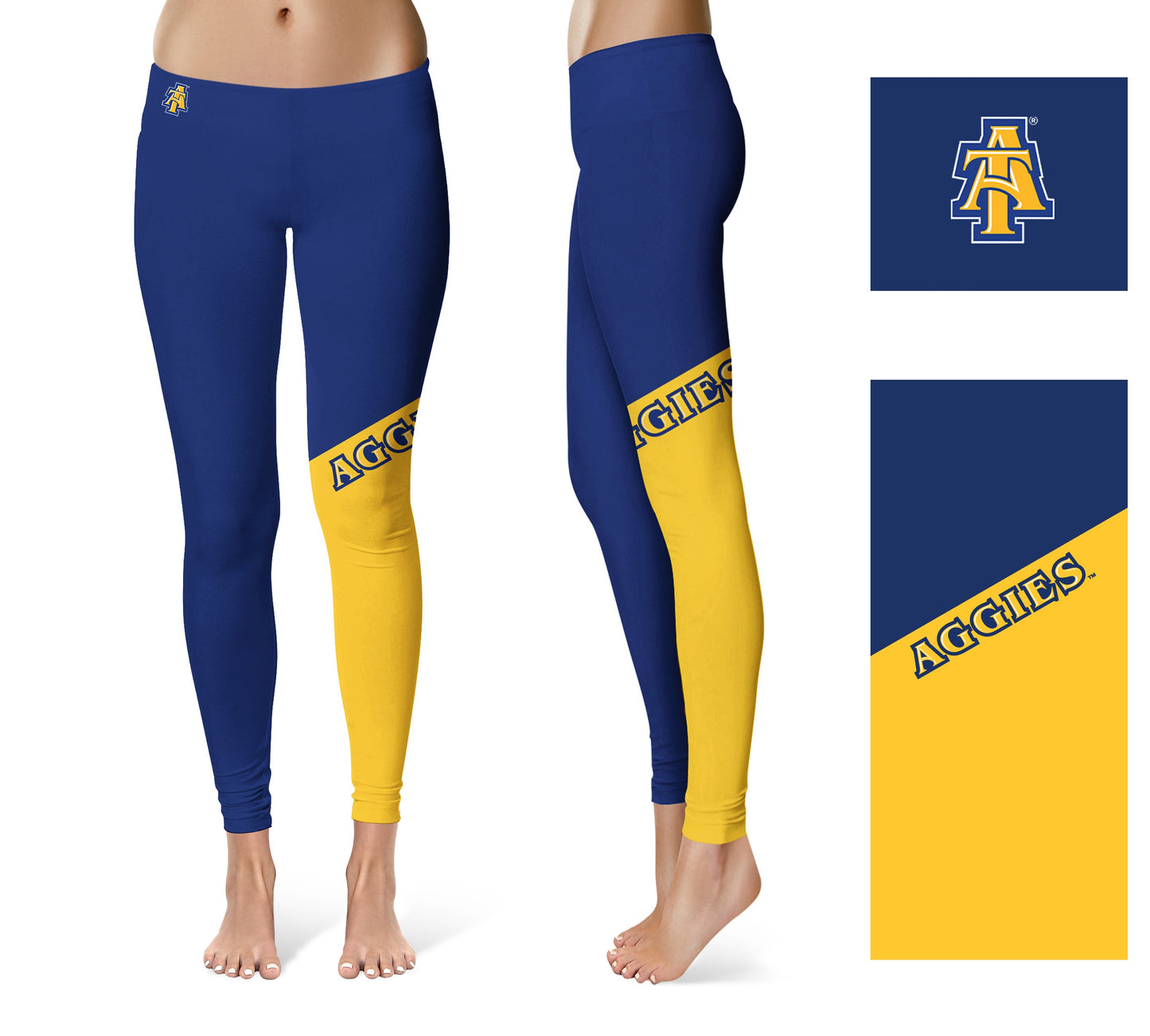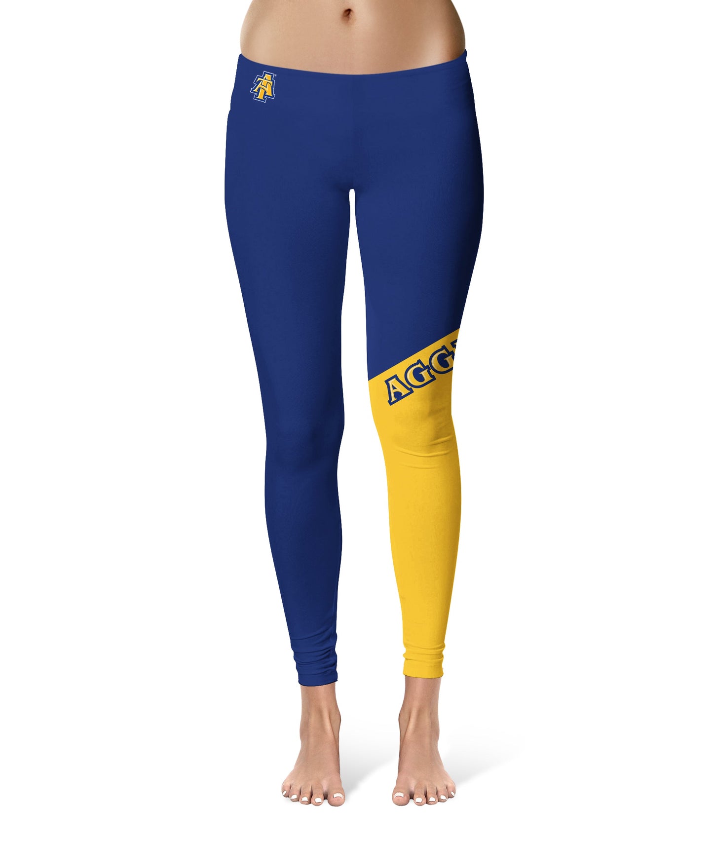 North Carolina A&T Aggies Game Day Leg Color Block Blue Gold Yoga Leggings for Women by Vive La Fete