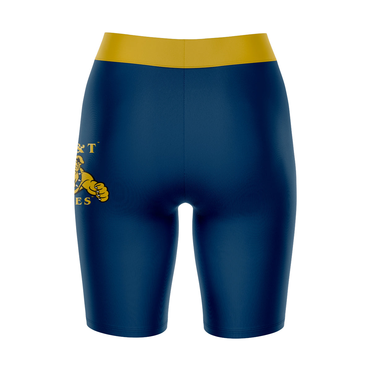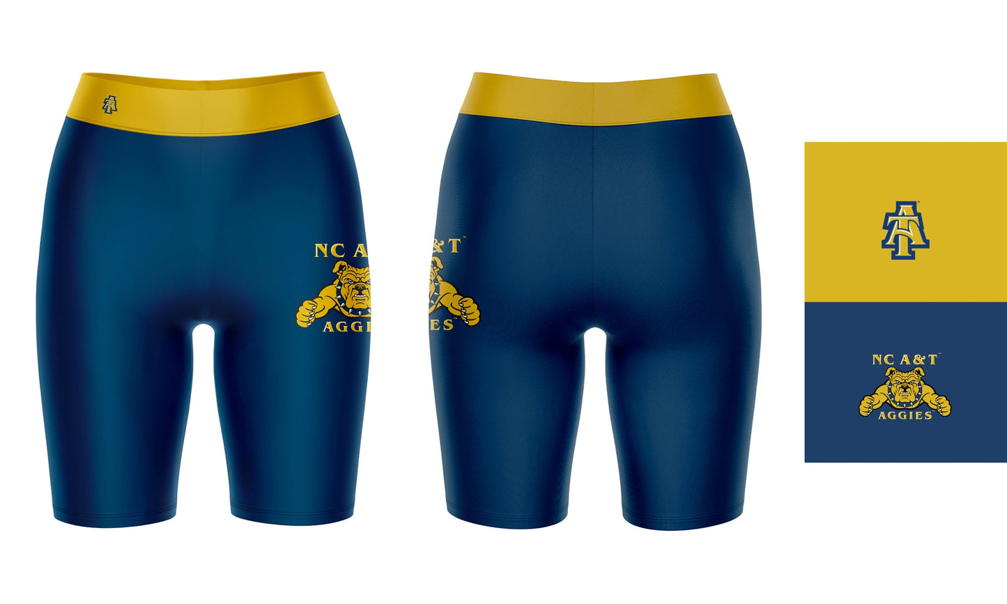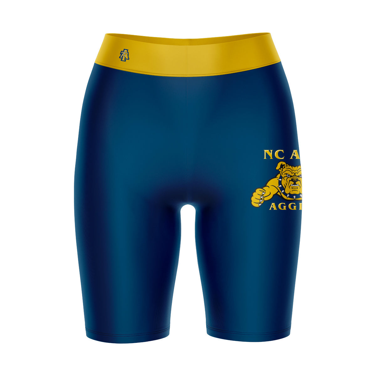 North Carolina A&T Aggies Game Day Logo on Thigh and Waistband Blue and Gold Womens Bike Shorts by Vive La Fete