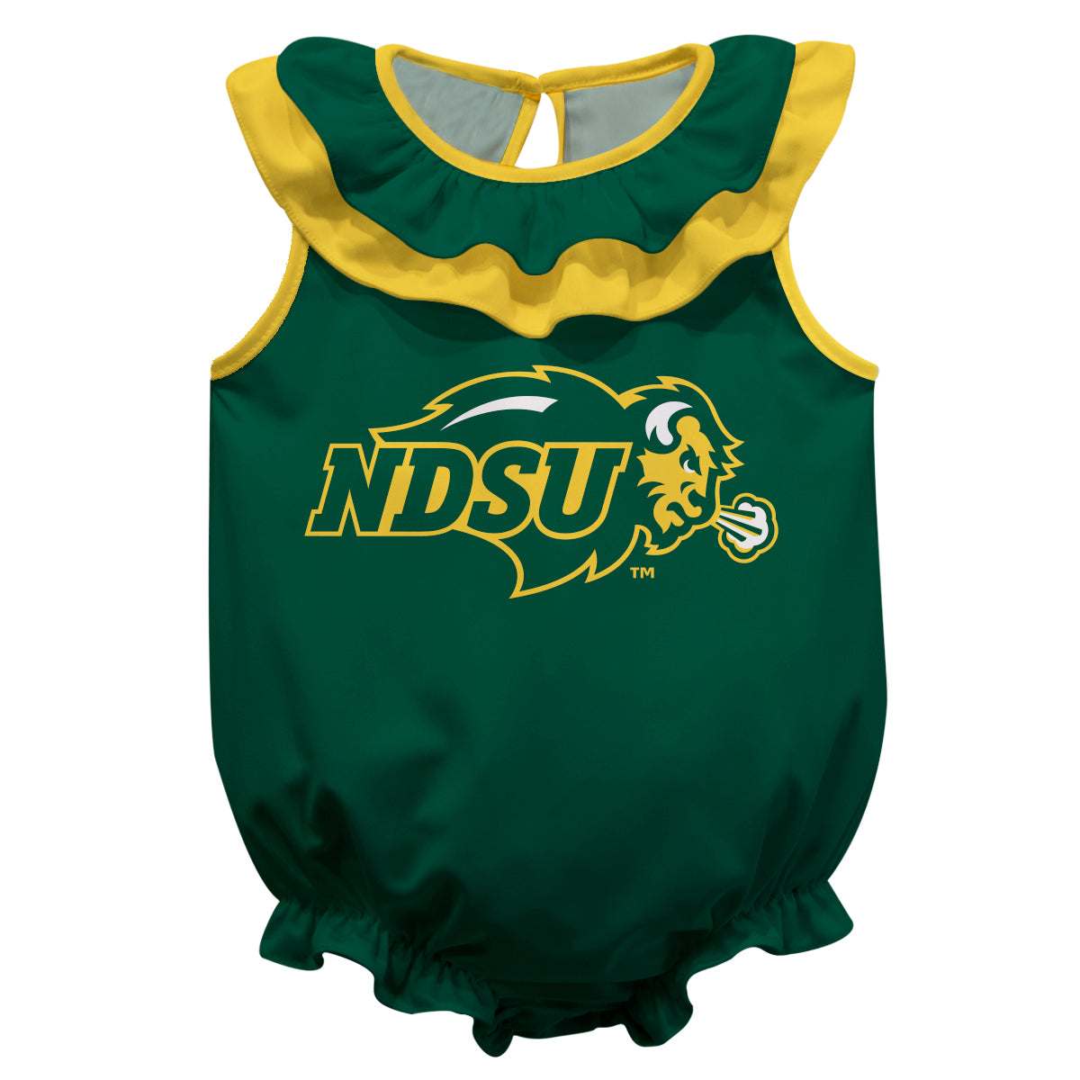 North Dakota Bison Green Sleeveless Ruffle One Piece Jumpsuit Logo Bodysuit by Vive La Fete
