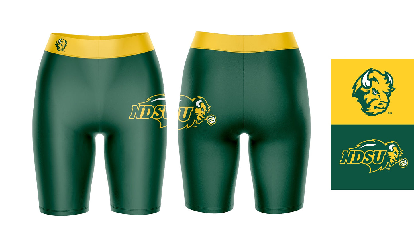 North Dakota Bison Game Day Logo on Thigh and Waistband Green and Gold Womens Bike Shorts by Vive La Fete