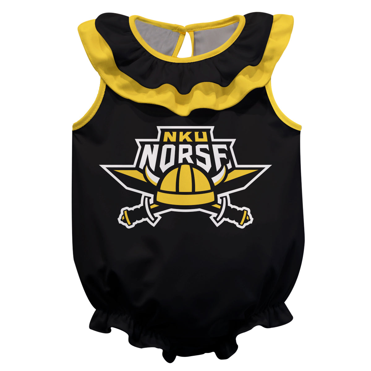 Northern Kentucky Norse Black Sleeveless Ruffle One Piece Jumpsuit Mascot Bodysuit by Vive La Fete