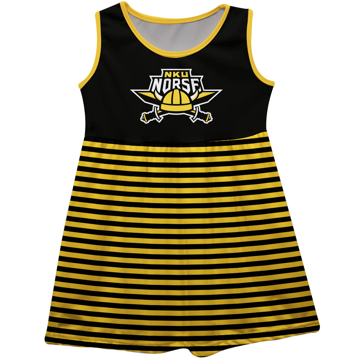 Northern Kentucky Norse Girls Game Day Sleeveless Tank Dress Solid Black Logo Stripes on Skirt by Vive La Fete