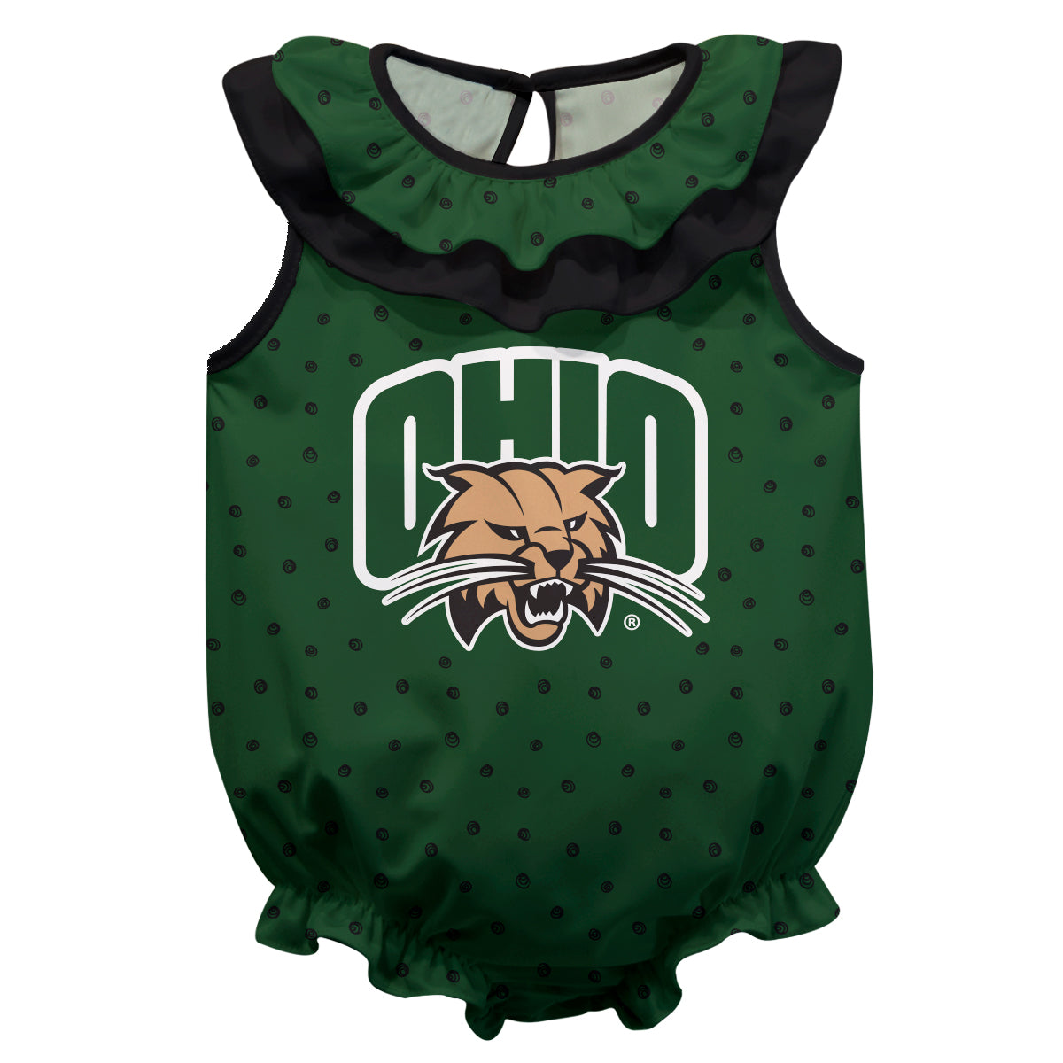 Ohio University Bobcats Swirls Green Sleeveless Ruffle One Piece Jumpsuit Logo Bodysuit by Vive La Fete