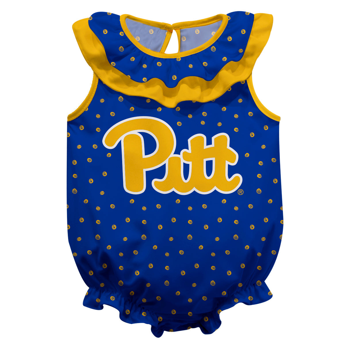 Pittsburgh Panthers UP Swirls Blue Sleeveless Ruffle One Piece Jumpsuit Logo Bodysuit by Vive La Fete