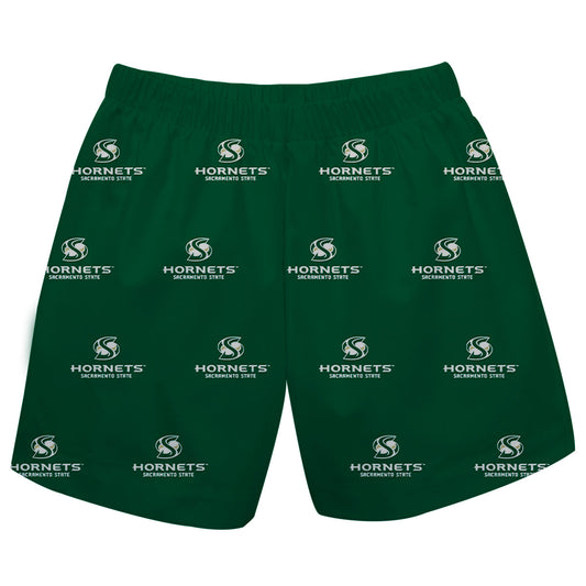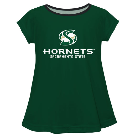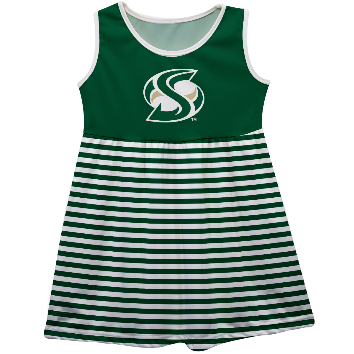 Sacramento State Hornets Girls Game Day Sleeveless Tank Dress Solid Green Logo Stripes on Skirt by Vive La Fete