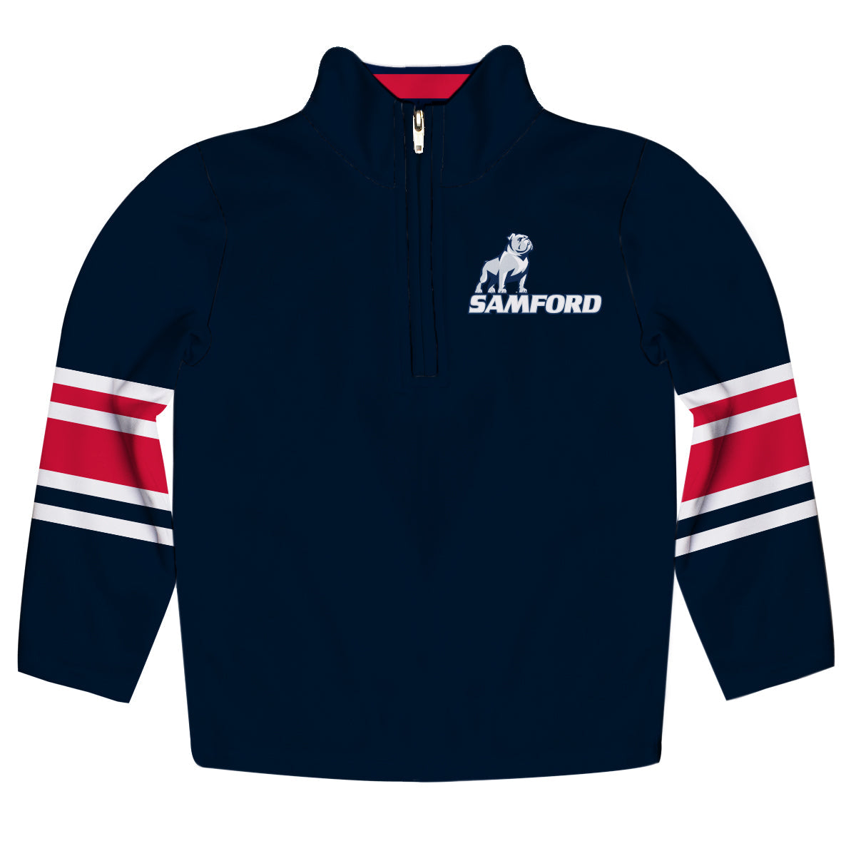 Samford Bulldogs Game Day Navy Quarter Zip Pullover Sweatshirt for Toddlers and Youth by Vive La Fete