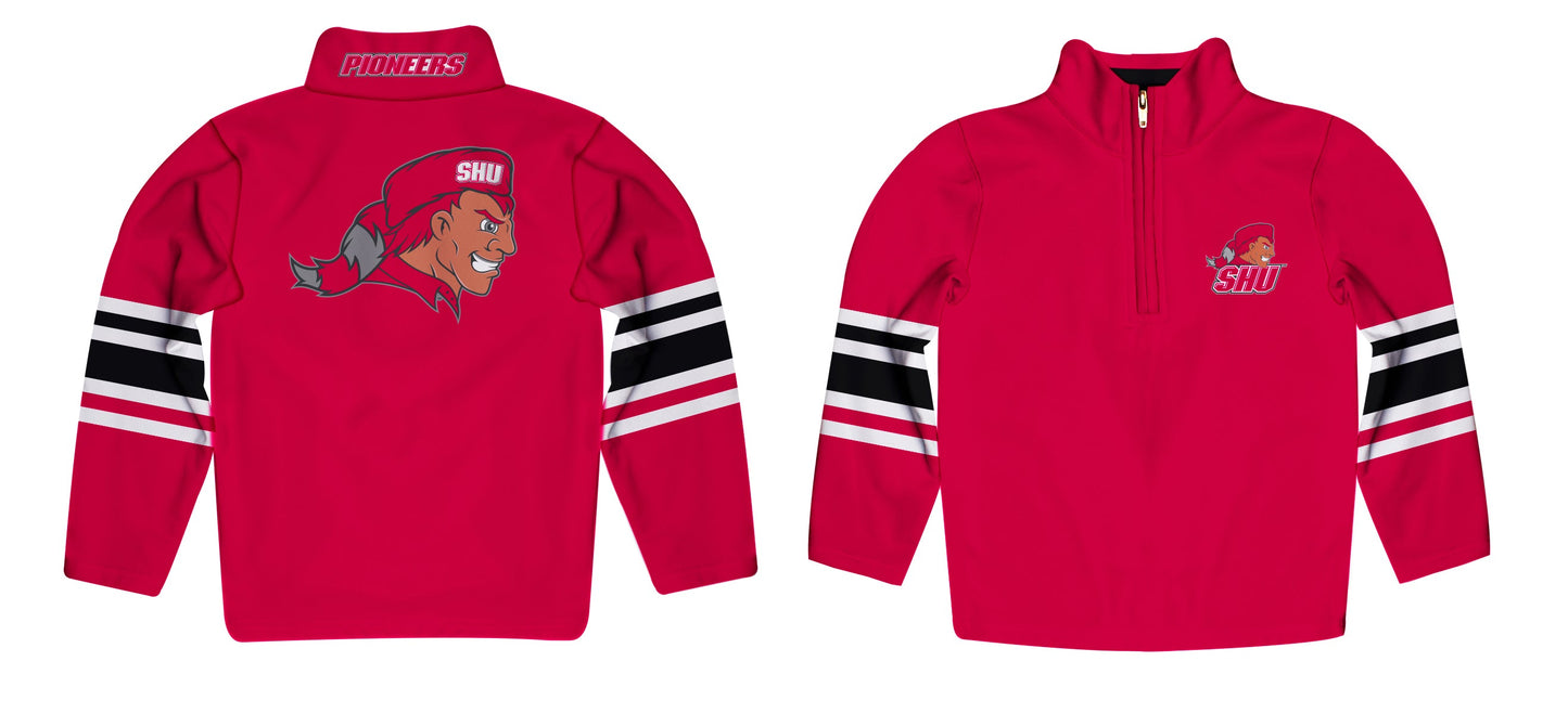 SHU Sacred Heart University Pioneers Game Day Red Quarter Zip Pullover Sweatshirt for Toddlers and Youth by Vive La Fete