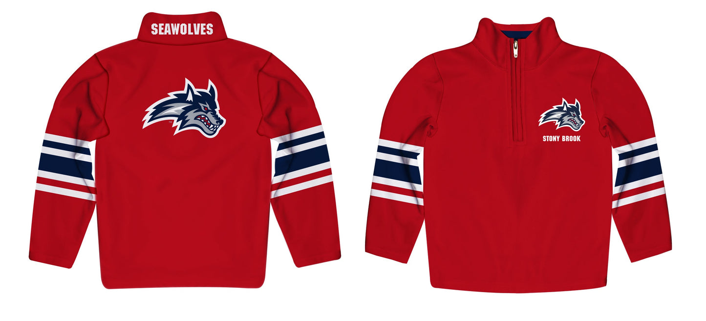 Stony Brook Seawolves Game Day Red Quarter Zip Pullover Sweatshirt for Toddlers and Youth by Vive La Fete