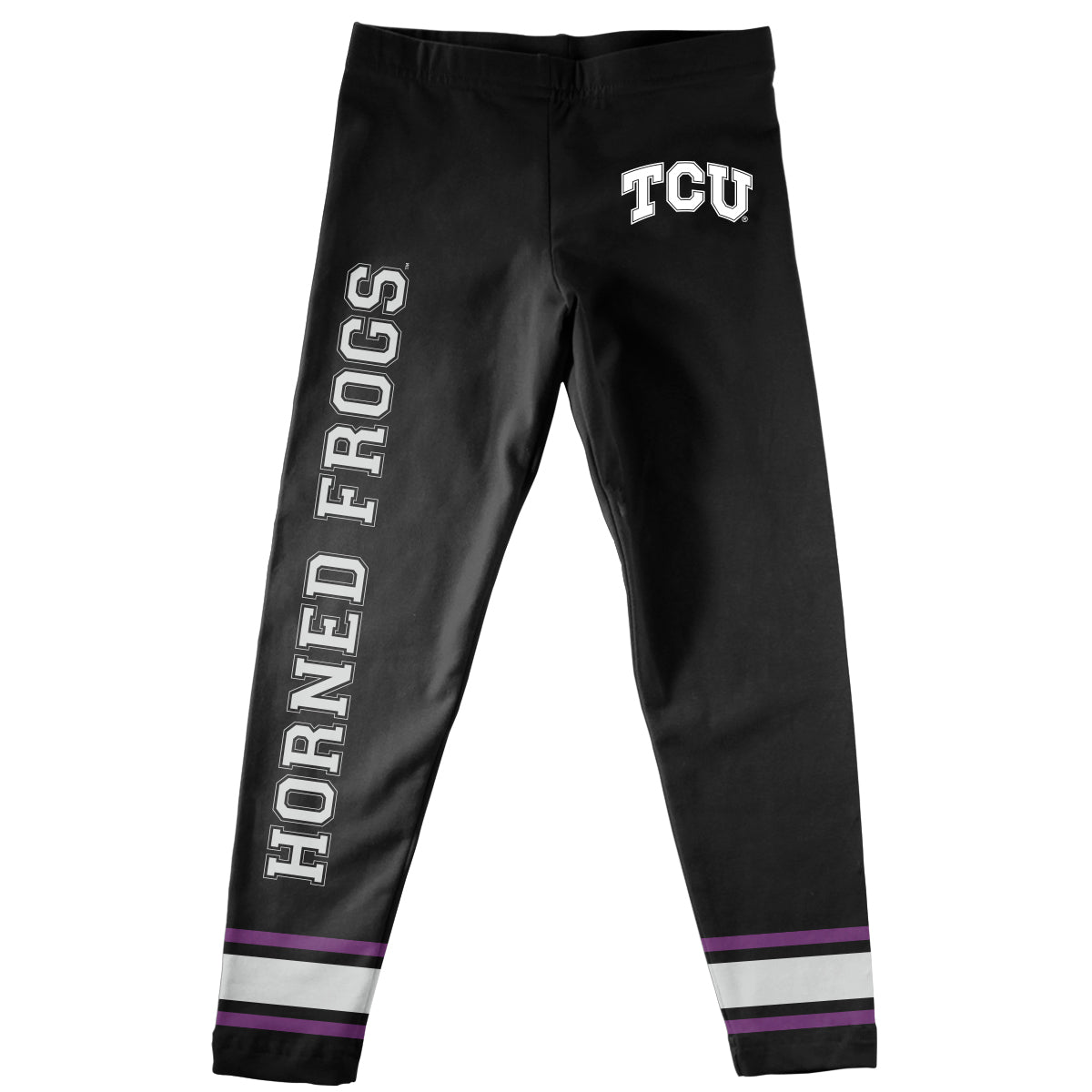 TCU Honed Frogs Verbiage And Logo Black Stripes Leggings