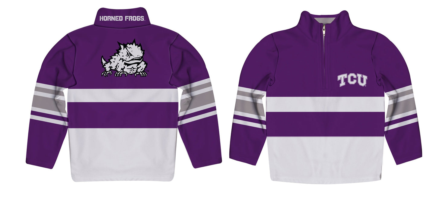 TCU Horned Frogs Logo Stripes Purple Quarter Zip Pullover Sweatshirt for Toddler and Youth