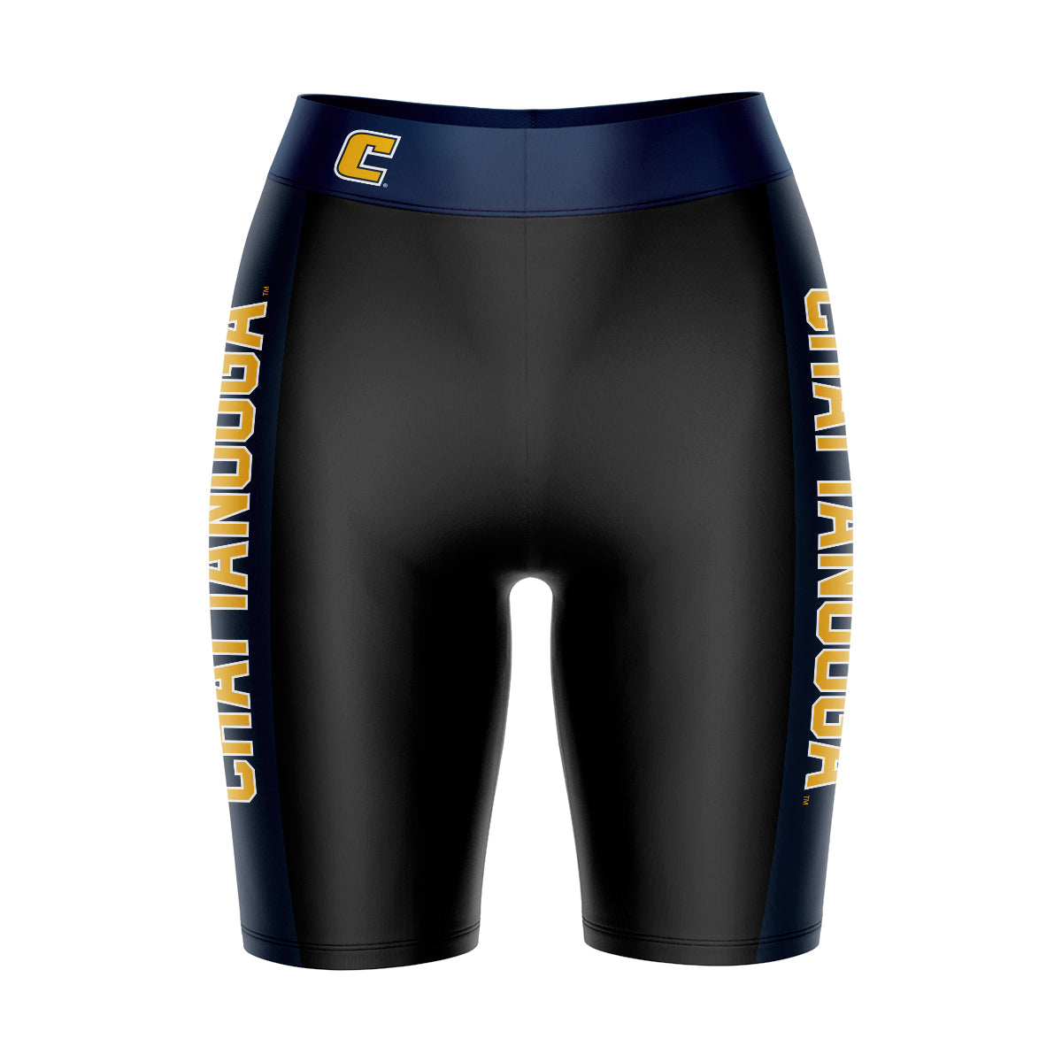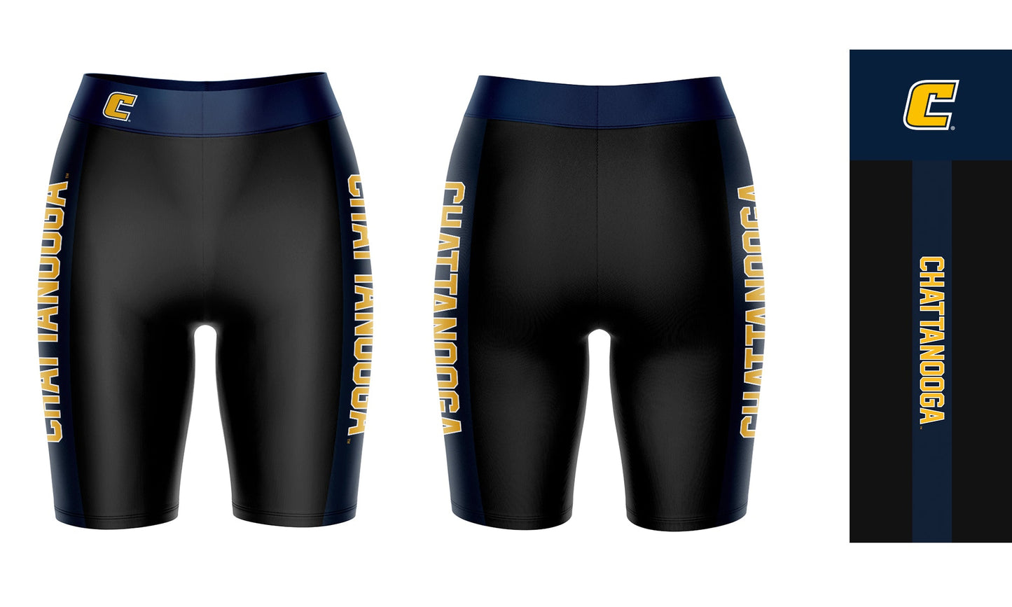 Tennessee Chattanooga MOCS Game Day Logo on Waistband and Navy Stripes Black Womens Bike Shorts by Vive La Fete