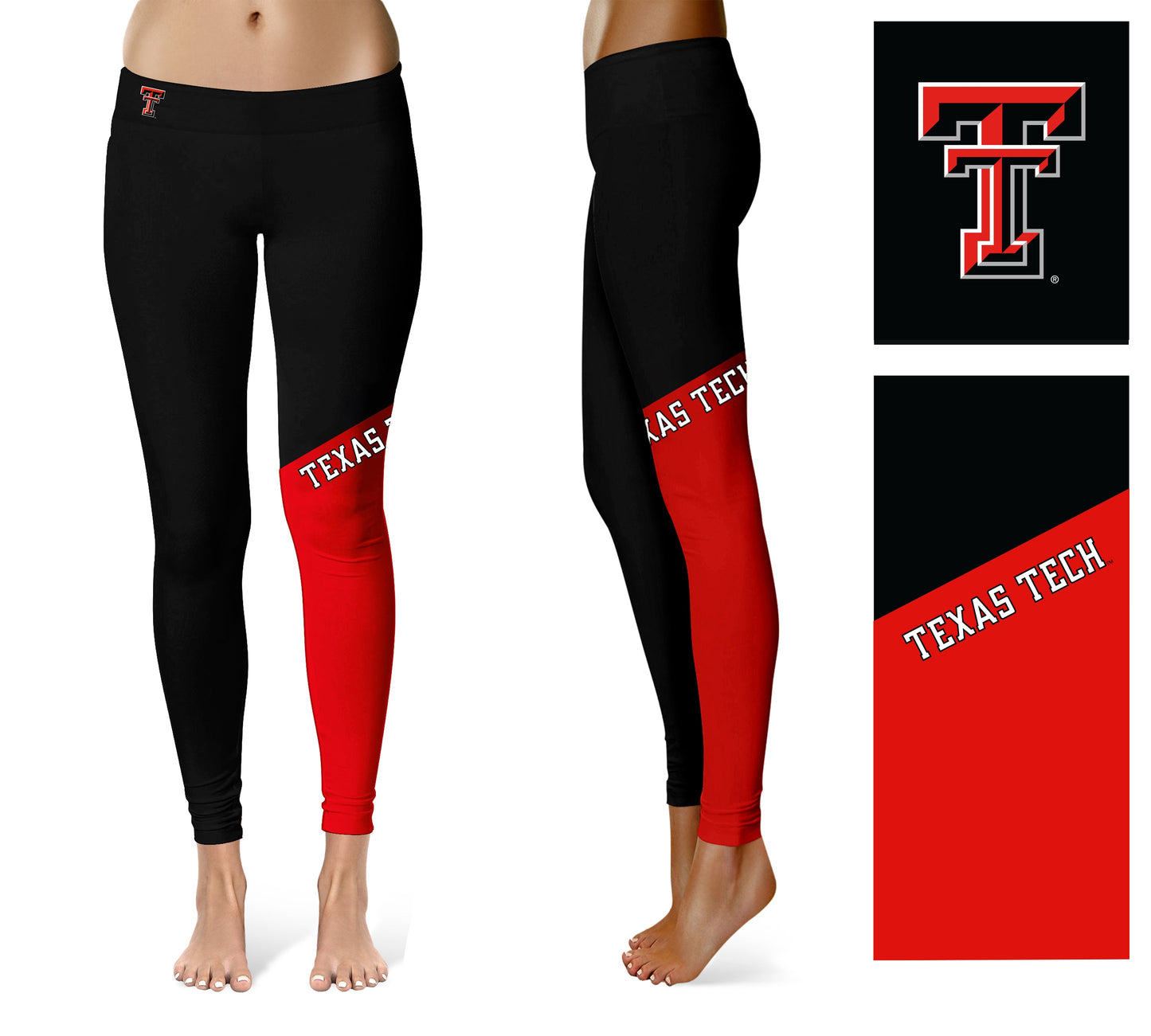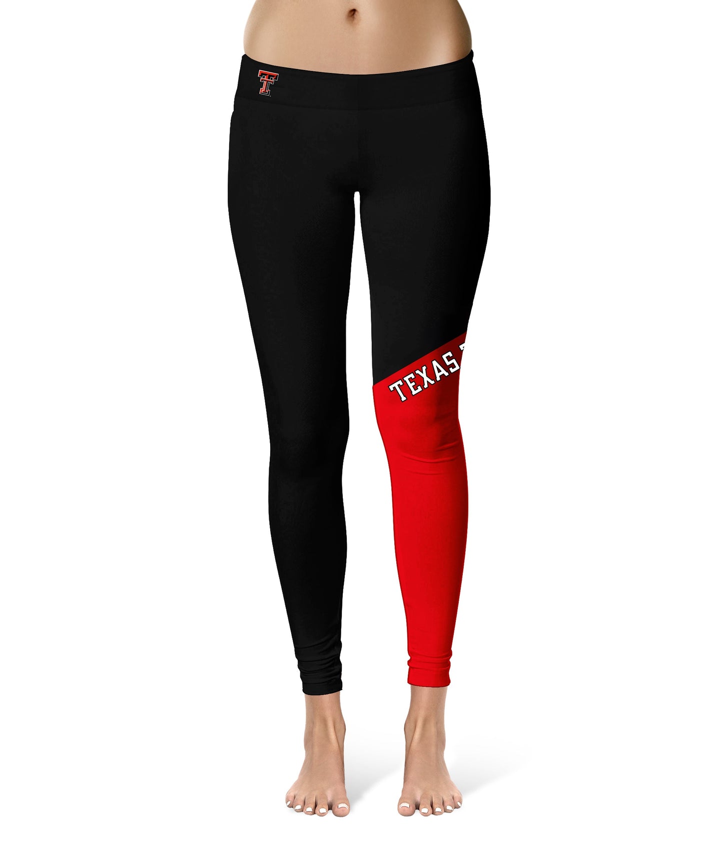 Texas Tech Red Raiders Game Day Leg Color Block Black Red Yoga Leggings for Women by Vive La Fete